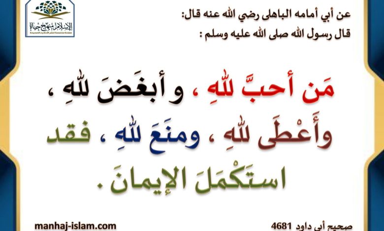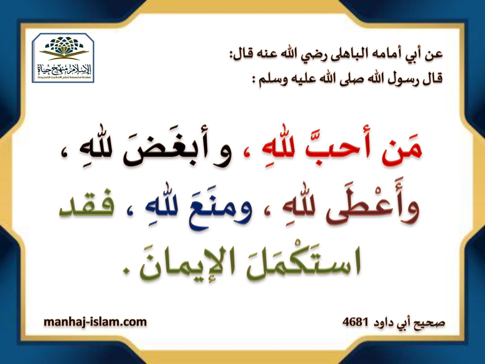 مَن أحبَّ للهِ ، وأبغَضَ للهِ ، وأَعْطَى للهِ ، ومنَعَ للهِ ، فقد استَكْمَلَ الإيمانَ.